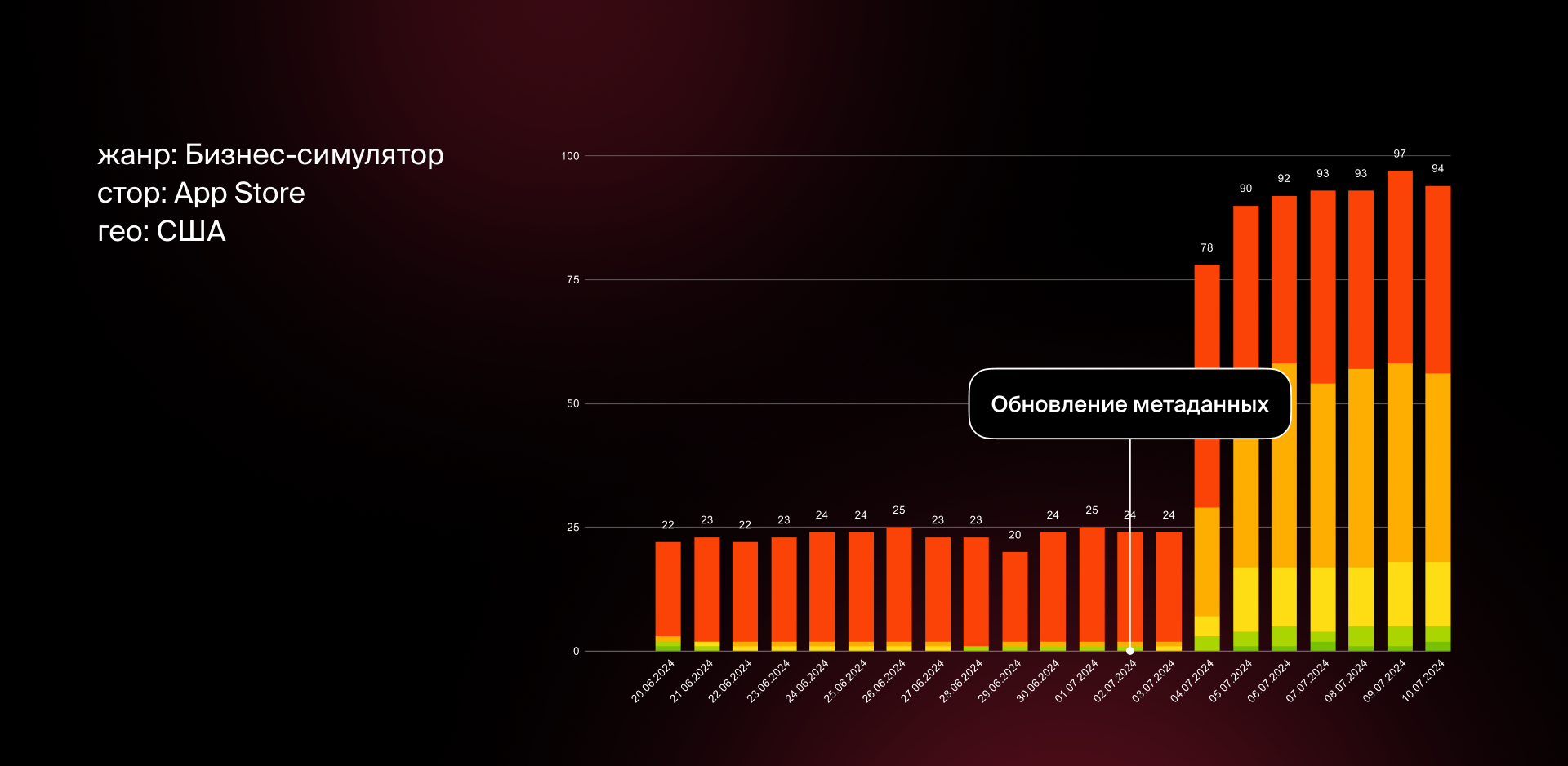 Пример из практики: мы с командой сделали кросс-локализацию для игры в жанре бизнес-симулятора (гео США). После первой итерации количество индексируемых запросов выросло в 4-5 раз, а по части из них игра поднялась в топ-10, что дало приток органических установок.