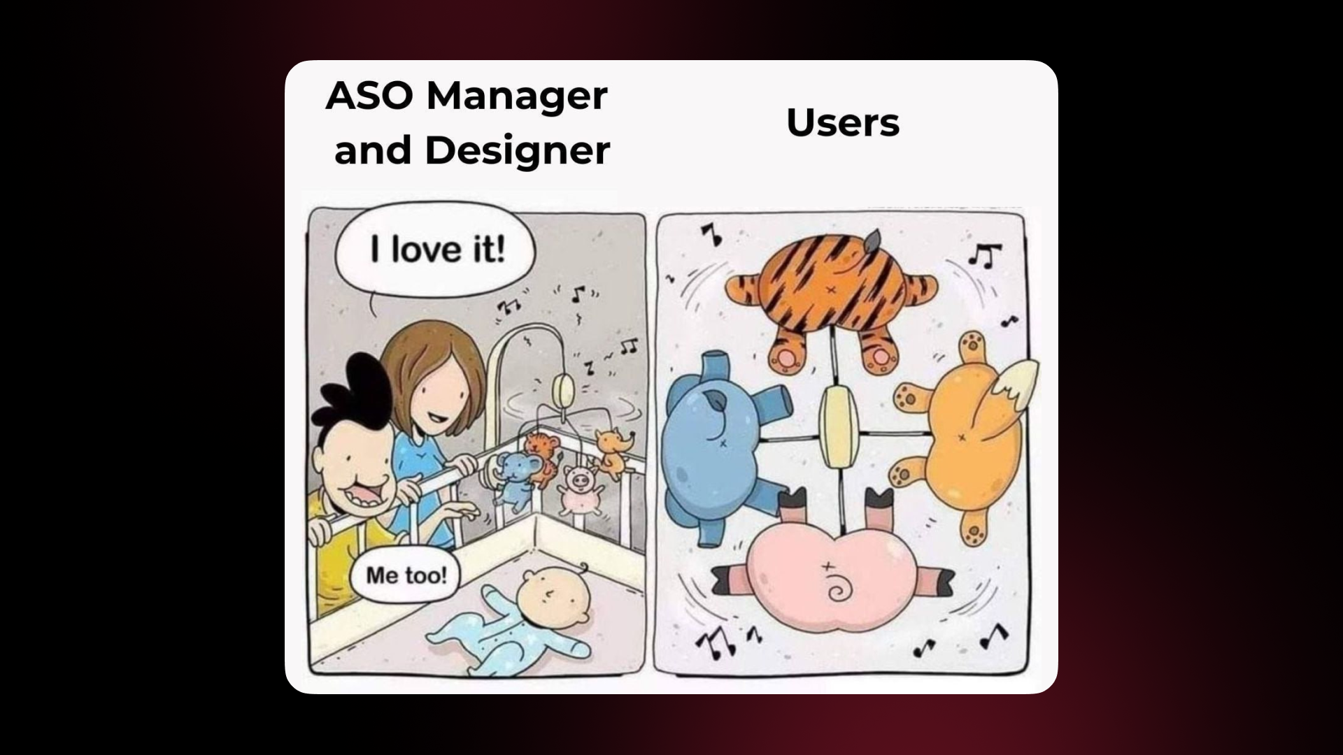 Если графика непривлекательная и неинформативная, пользователь уйдёт искать вариант понятнее и симпатичнее. На картинке ниже — горькая правда графической оптимизации: то, что нравится ASO-менеджерам и дизайнерам, может совершенно не зацепить аудиторию.