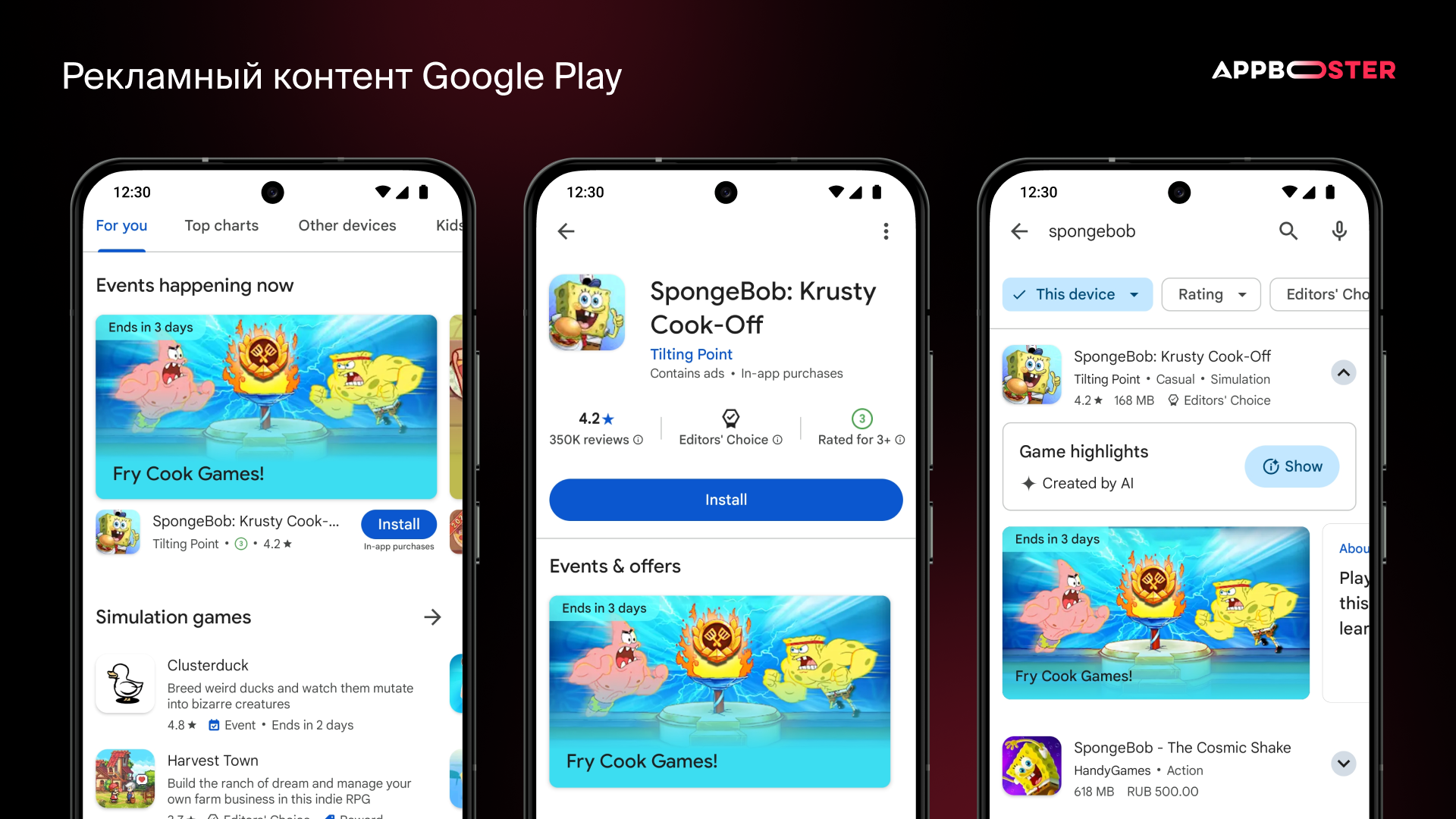 Поэтому лучший способ понять, что действительно работает, — это A/B-тесты. Их стоит использовать для любой графики: иконок, скриншотов, видео. Важно проверять, что цепляет именно пользователей, а не разработчика или дизайнера. Такие тесты сегодня доступны и в App Store, и в Google Play, но в Google Play они работают стабильнее, проще и понятнее.