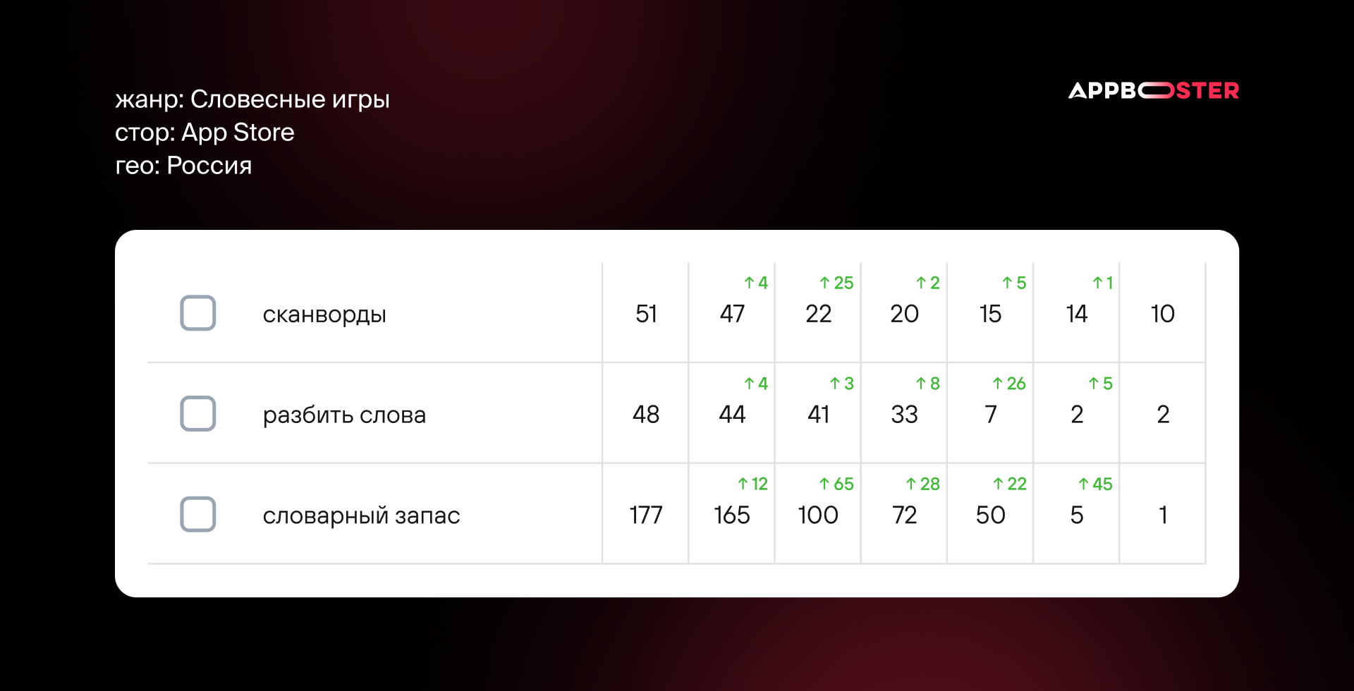 Ключевые слова подбирают через ASO-сервисы. Их много — я чаще всего работаю с Apptweak, Appfollow и MobileAction. Больше всего нравится Apptweak, хотя он и дороже остальных. Если вы только начинаете, можно оформить пробный период в любом сервисе, попробовать и понять, какой вам ближе.