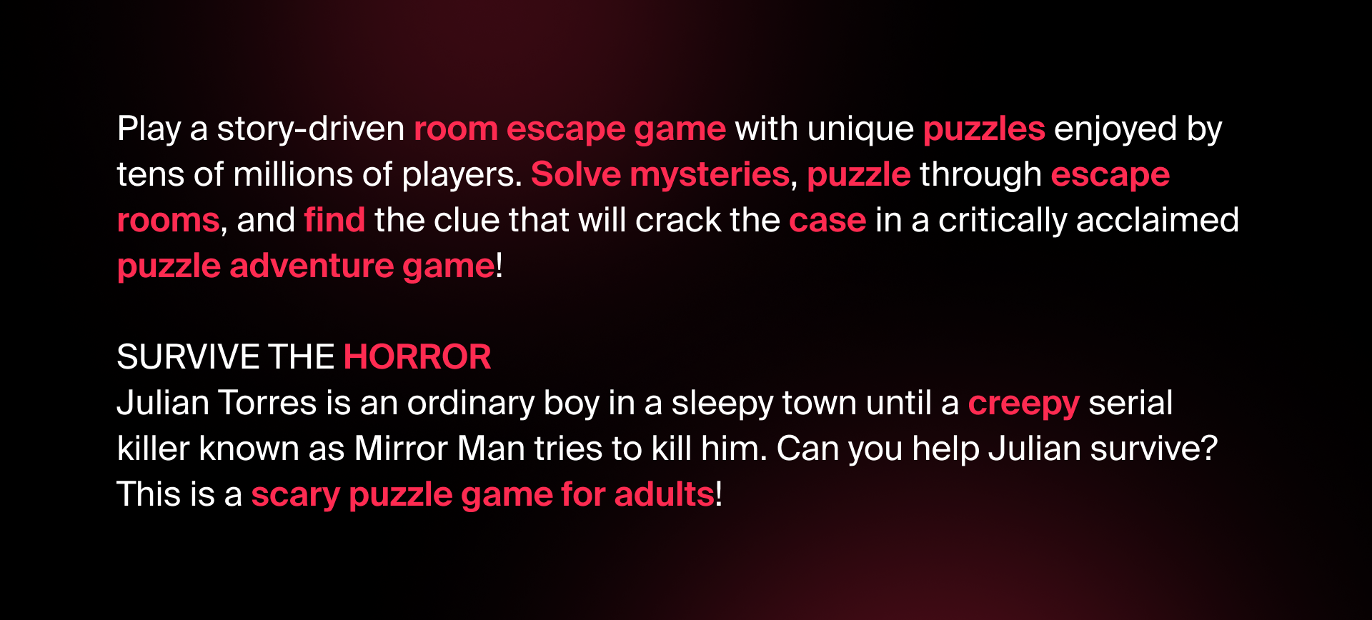 Например, ниже скрин описания игры жанра room escape. В него зашито множество ключевых слов, однако они незаметны и воспринимаются естественно.