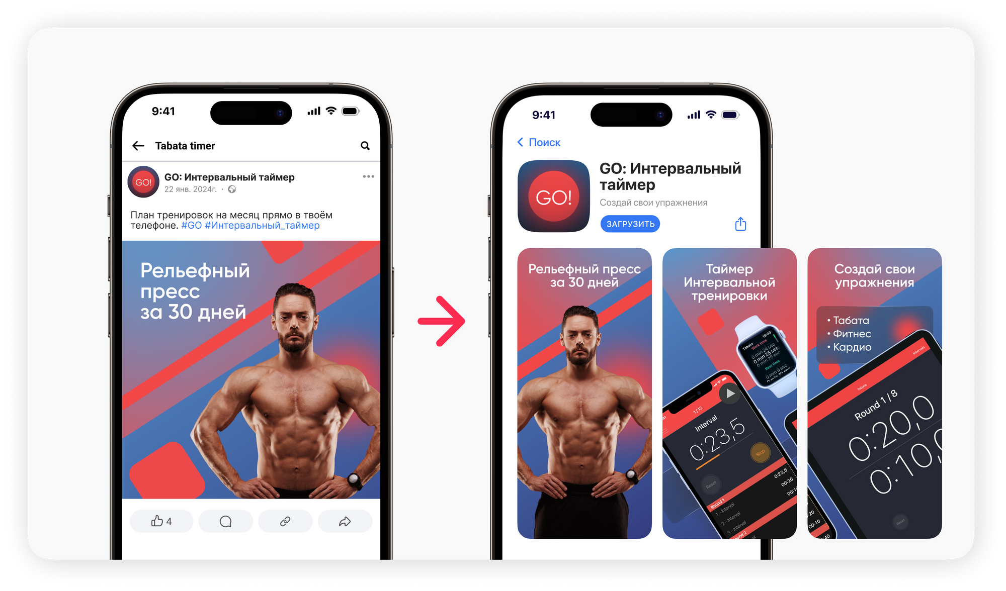 В App Store ключевой рекламный инструмент — Apple Search Ads (к сожалению, он не доступен для российского гео), а внешние каналы чаще работают как дополнительный источник охвата.
